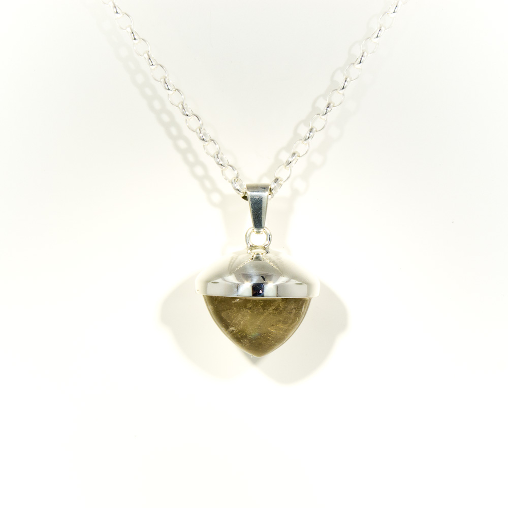 We decided to transform this piece of beautiful smokey quartz into a stylish acorn-shaped pendant. The finished product is pictured below on a sterling silver chain.
