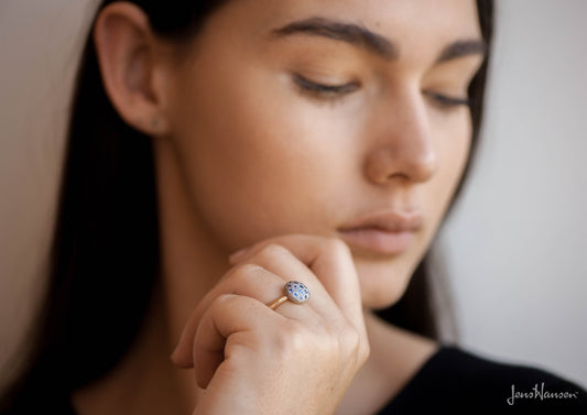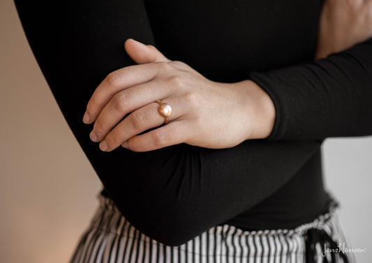Bi-Tone Button Ring, Yellow Gold & Sterling Silver