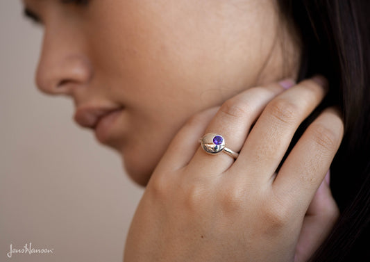 Bi-Tone Button Ring, Red Gold & Sterling Silver