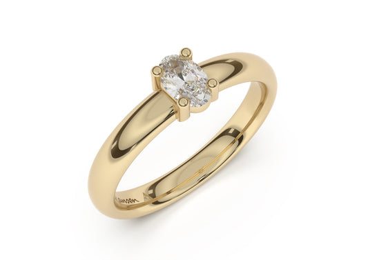 Oval Contemporary Slim Engagement Ring, Yellow Gold