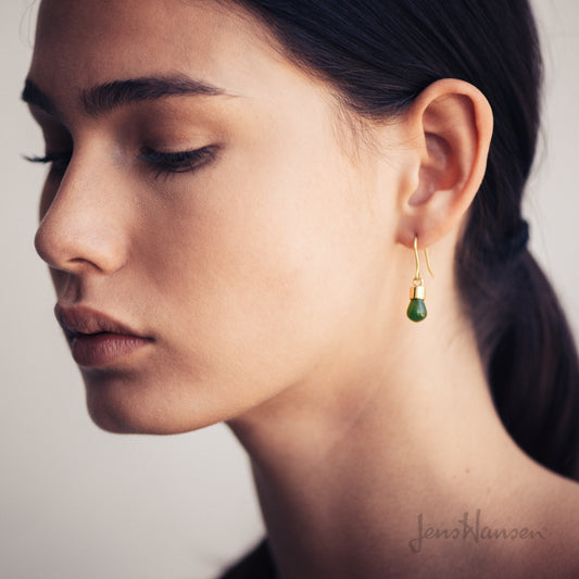 New Zealand Greenstone 'Pounamu' Earrings, Yellow Gold