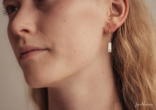 Rectangle Love Stories Diamond Earrings, Yellow Gold