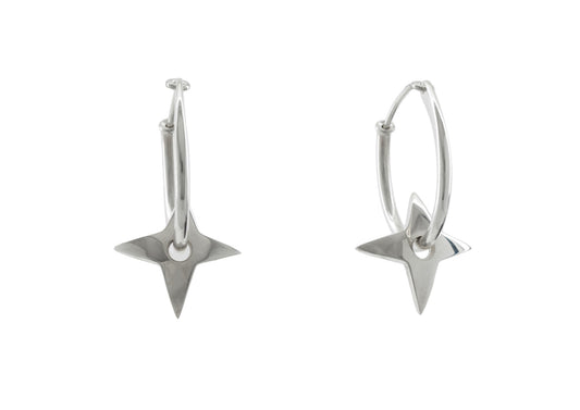 E28 Four-Point Star Hoop Earring, Sterling Silver