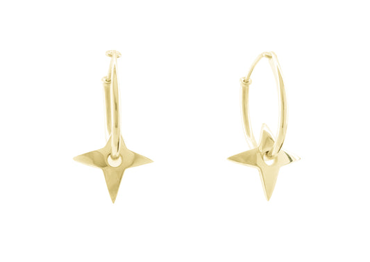 E28 Four-Point Star Hoop Earring, Yellow Gold