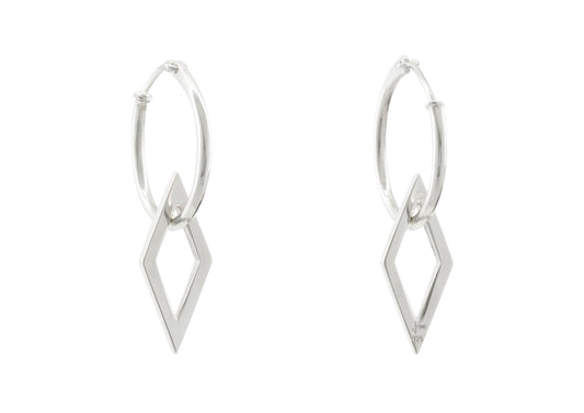 E31 Open Diamond Shape Hoop Earrings, Sterling Silver