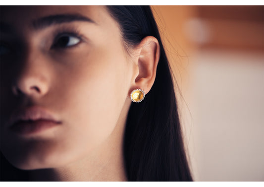 Square Domed Studs, Yellow Gold