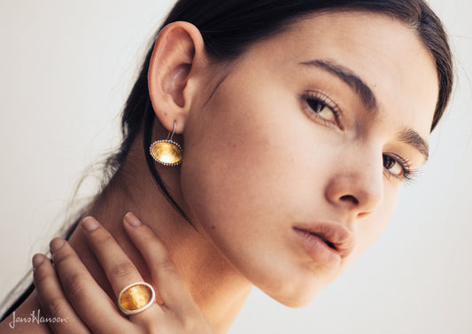 Round Gold Bond Earrings, Sterling Silver