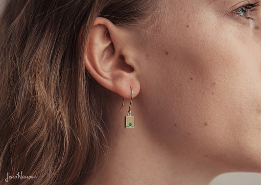 Rectangle Love Stories Precious Gemstone Earrings, Yellow Gold