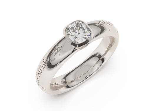 Cushion Modern Elvish Engagement Ring, White Gold & Platinum