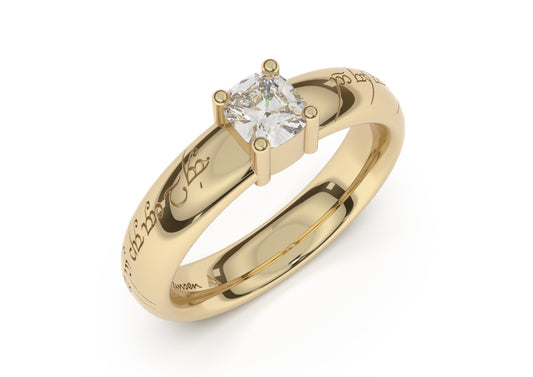 Cushion Classic Slim Elvish Engagement Ring, Yellow Gold