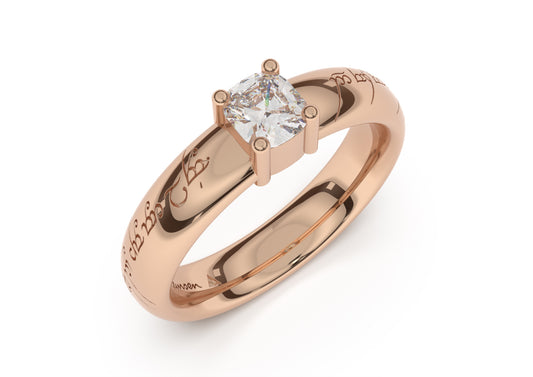 Cushion Classic Slim Elvish Engagement Ring, Red Gold