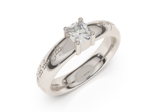 Cushion Classic Slim Elvish Engagement Ring, White Gold & Platinum