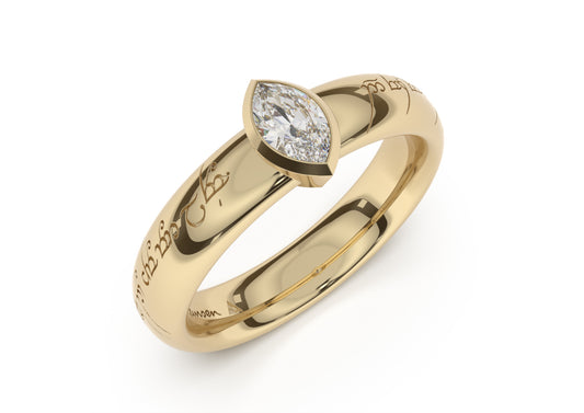 Marquise Classic Slim Elvish Engagement Ring, Yellow Gold