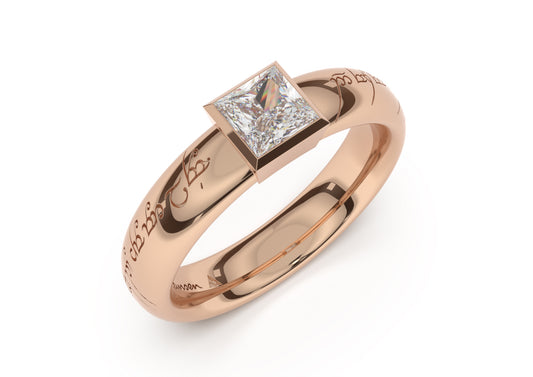 Princess Elegant Elvish Engagement Ring, Red Gold