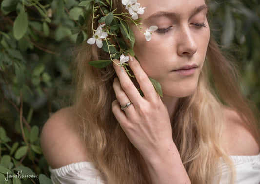 Contemporary Slim Elvish Precious Gemstone Engagement Ring, Red Gold