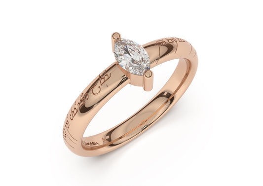Marquise Classic Slim Elvish Engagement Ring, Red Gold