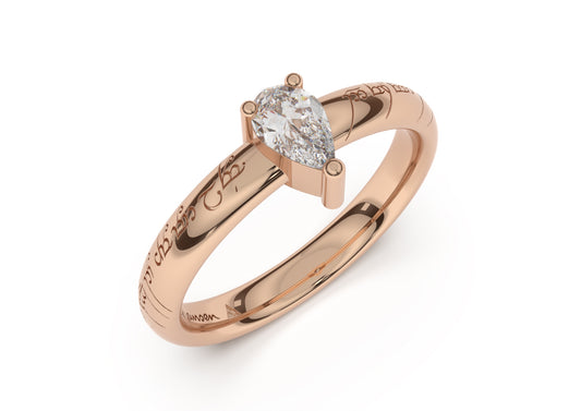 Pear Classic Slim Elvish Engagement Ring, Red Gold