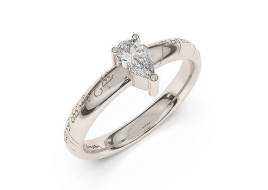 Pear Classic Slim Elvish Engagement Ring, White Gold & Platinum