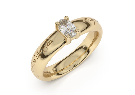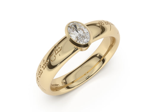 Oval Modern Elvish Engagement Ring, Yellow Gold