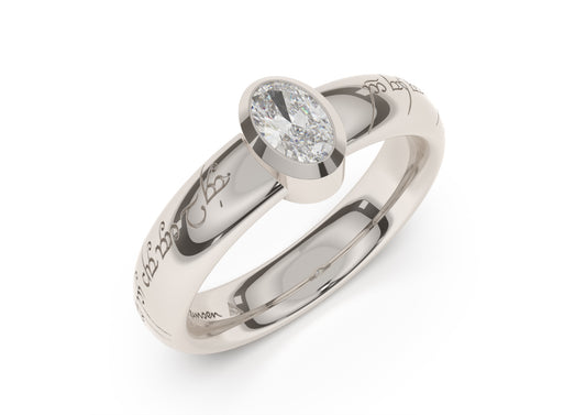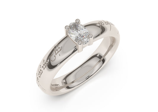 Oval Contemporary Slim Elvish Engagement Ring, White Gold & Platinum