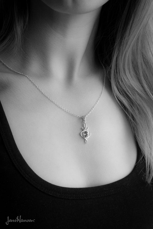 Flame Pendant with Pear Gemstone, Sterling Silver