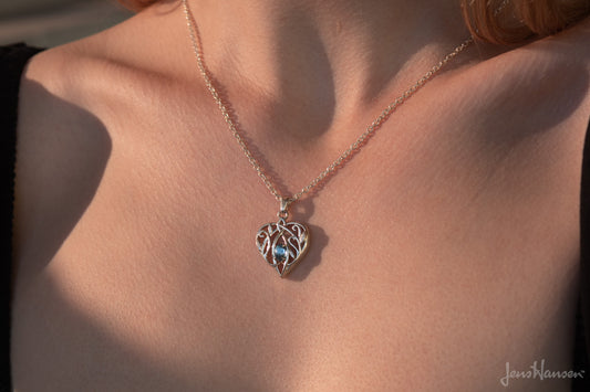 Elvish Gemstone Heart Pendant, Sterling Silver