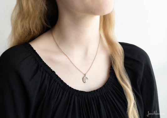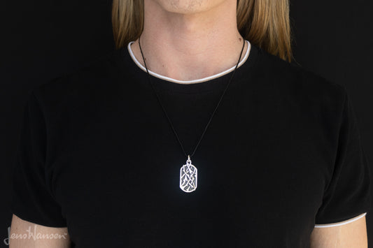 Elvish Woodland Dog Tag Pendant with Leather Cord, Sterling Silver