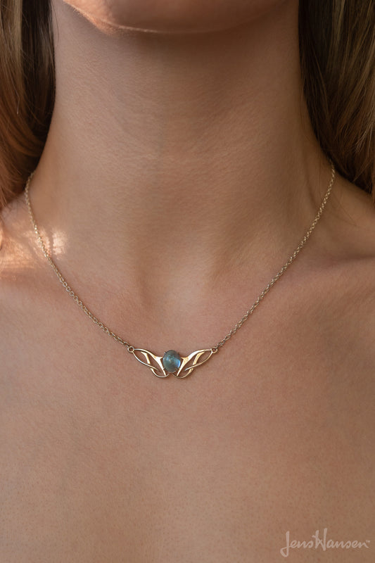 Oval Cabochon Gemstone Elvish Woodland Pendant, White Gold