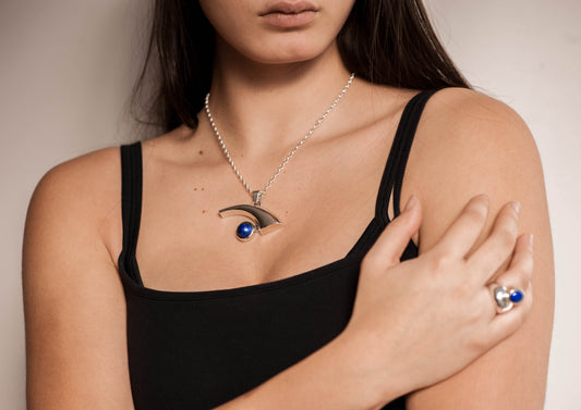 JW219 Cabochon Gemstone Pendant, Sterling Silver