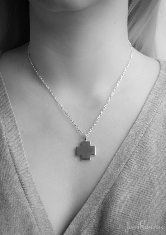 Bold Asymmetrical Cross #3, White Gold & Platinum