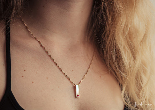 Rectangle Love Stories Precious Gemstone Pendant, Red Gold