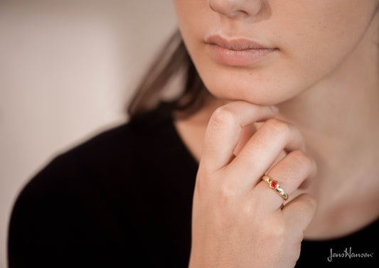 Lotus Ring in 18ct Yellow Gold with Red Coral