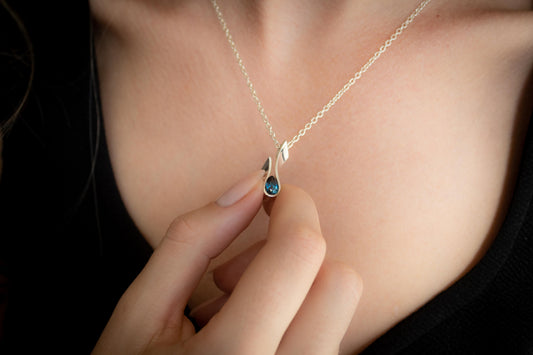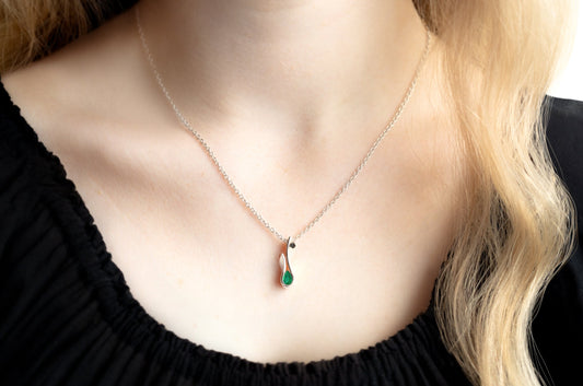 Flame Pendant with Pear Gemstone, Sterling Silver