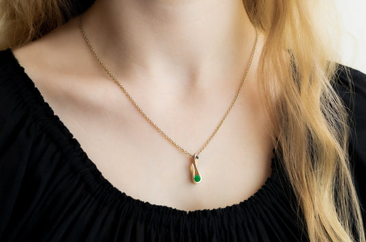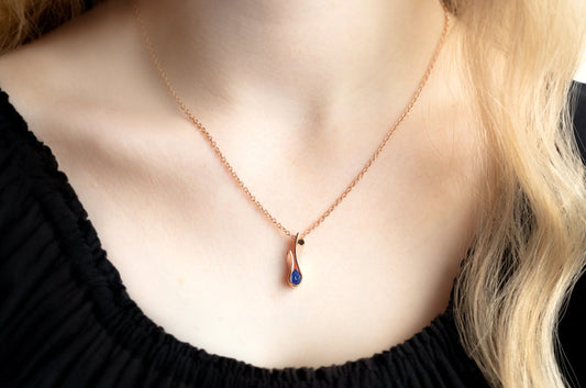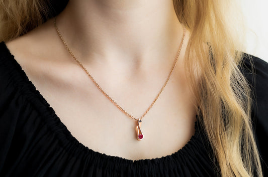 Flame Pendant with Precious Pear Gemstone, Red Gold