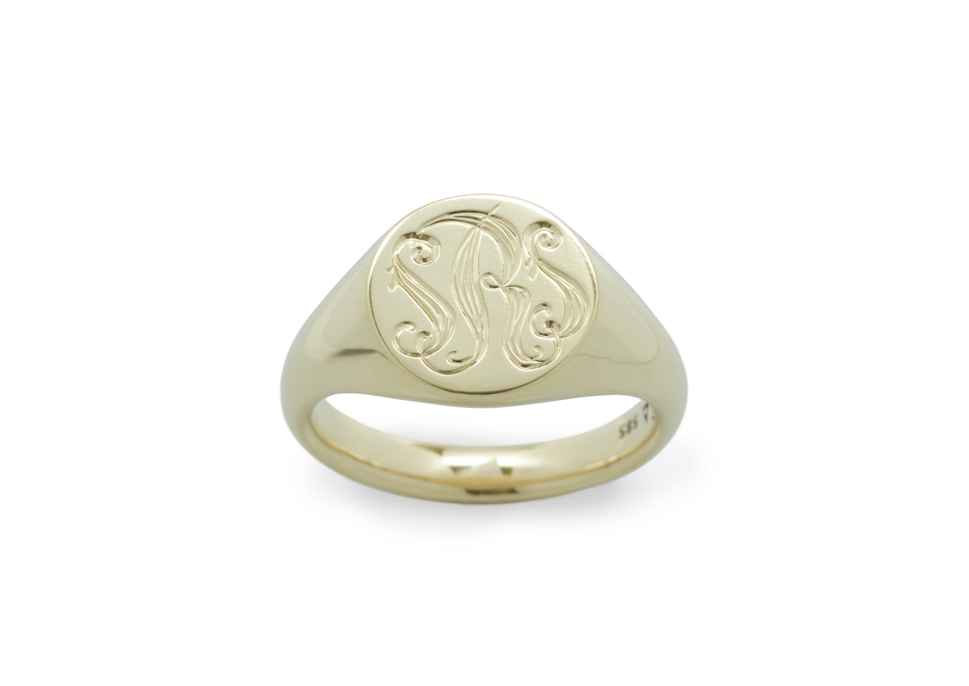 This classic round signet ring is customised with three hand-engraved initials. Bespoke hand-engraving means your signet is truly one of a kind, the perfect way to proudly wear your identity.