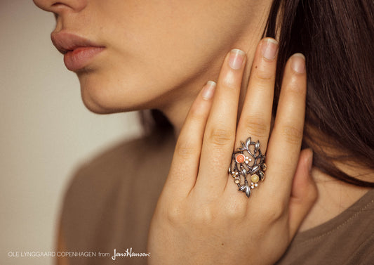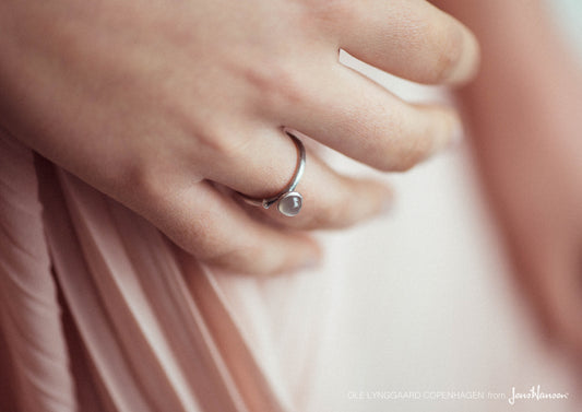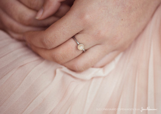 Lotus Ring in Sterling Silver with Blush Moonstone