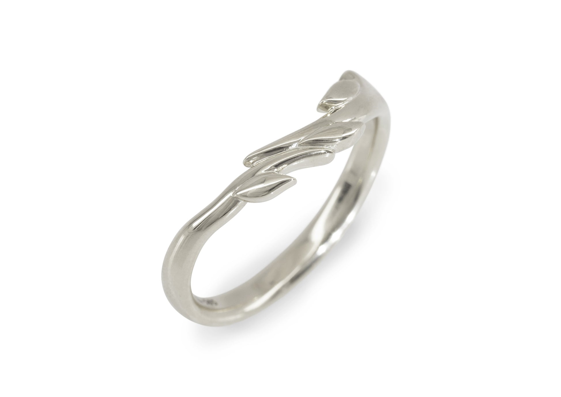 A white gold or platinum wedding band featuring vine details and leaves with a smooth finish. Designed to pair with the J3344 Vine Engagement Ring.