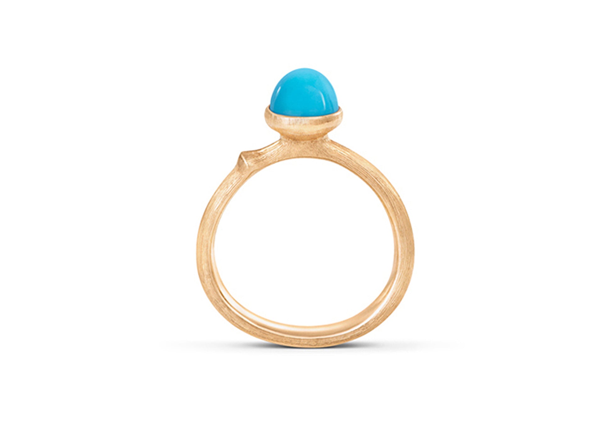 Tiny Lotus Ring size 0 in 18ct Yellow Gold with a round cabochon Turquoise.