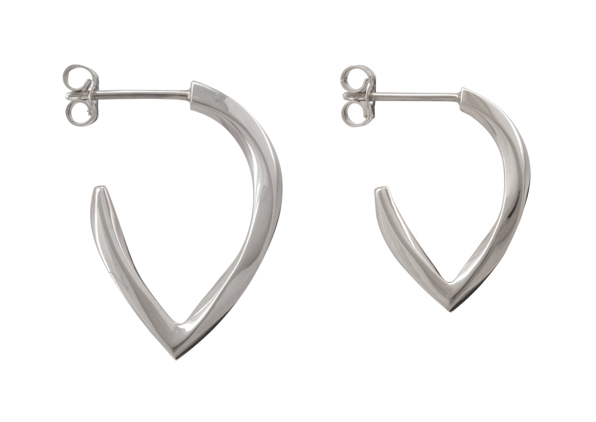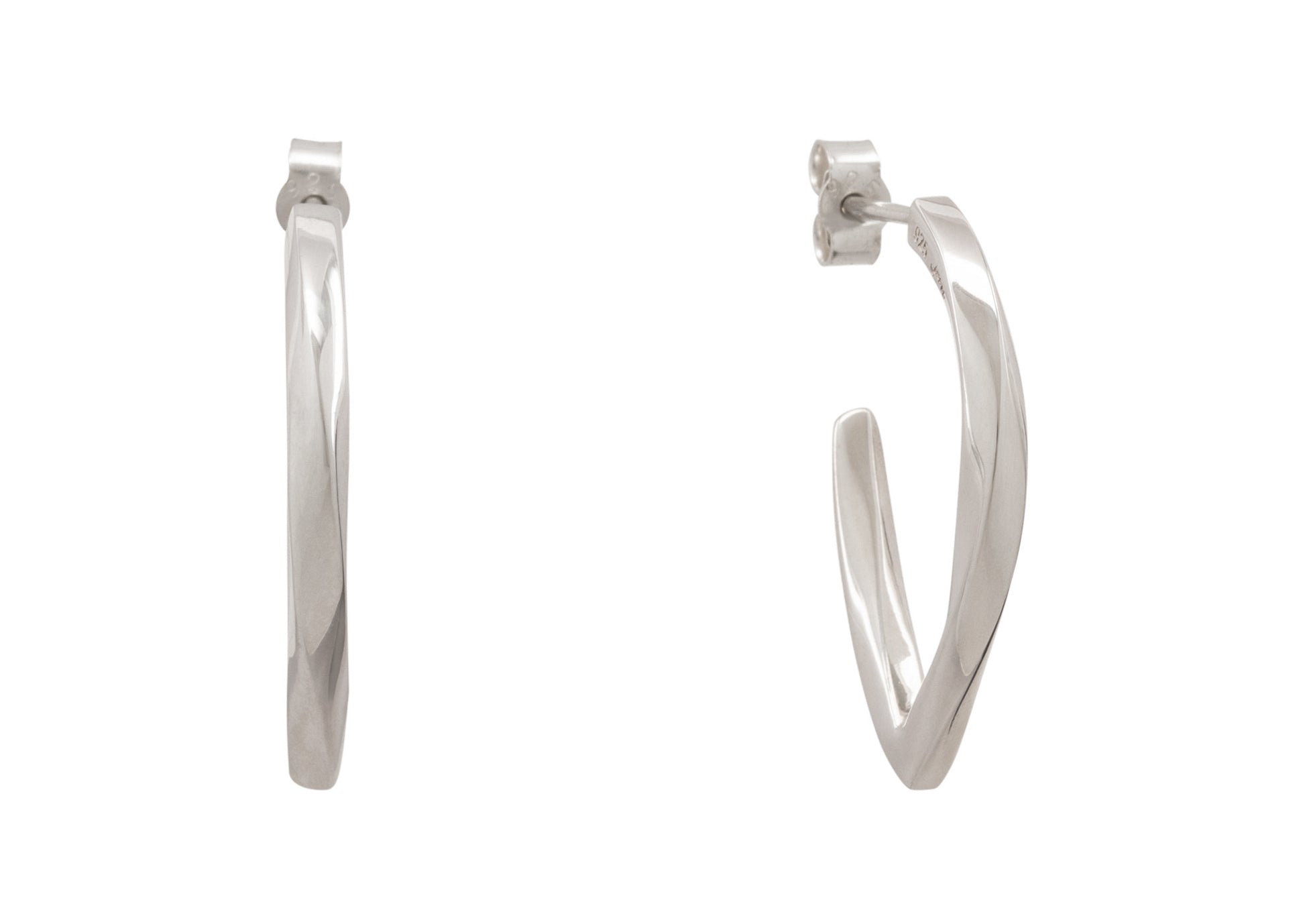 Handmade stud earrings of solid square twisted Sterling Silver. Available in a smaller or larger size.
